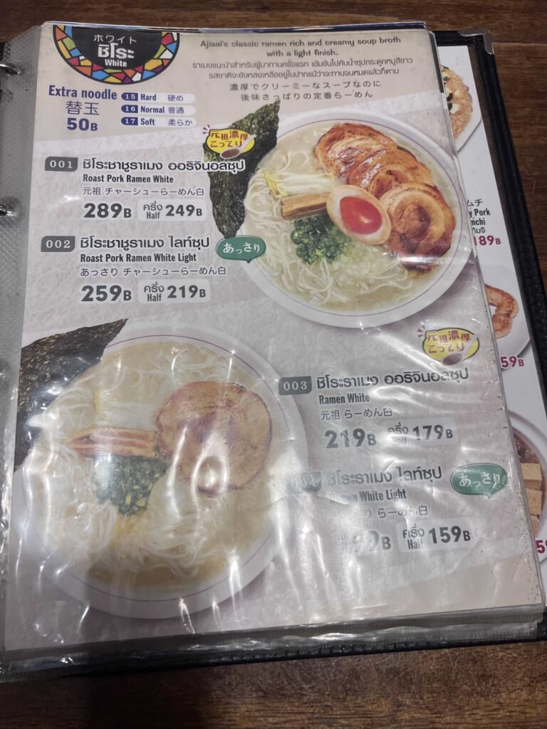 If you are someone who typically finds ramen too fatty, then you might try menu item 002, which is roast pork ramen white light and it is less fatty. But for me, I definitely prefer 001. I like the full flavor fat bomb.