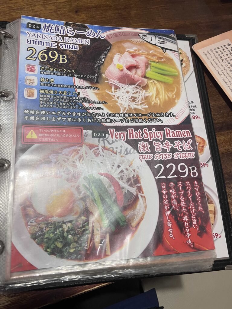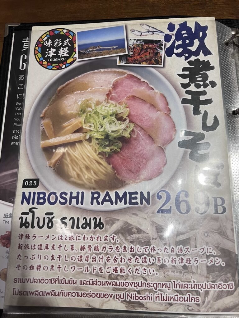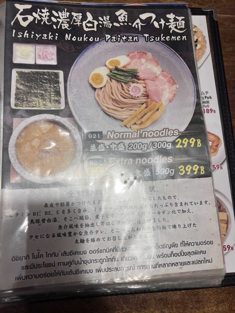 Small, cozy, dimly lit, dark wood interior — feels a bit like an actual Tokyo neighborhood ramen-ya. Low-key and authentic. I like the vibe here, it’s much quieter than Bankara in Soi 39 (which I like too btw), and much much nicer than the Bankara branch in Siam Paragon for example, where I just hate the atmosphere.