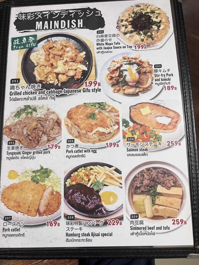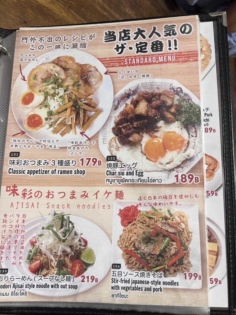 They also have a lunch menu where prices typically hover around 200 Baht (+/- 50 Baht or so, depending on which menu you choose). It comes with a main dish, rice, miso soup and condiments. We opted for the Chicken cutlet lunch set meal (#303, 189 Baht). (チキンカツ定食 / Chicken Katsu Teishoku). Now as mind-blowing as their ramen, but good for satisfying everyday lunch.